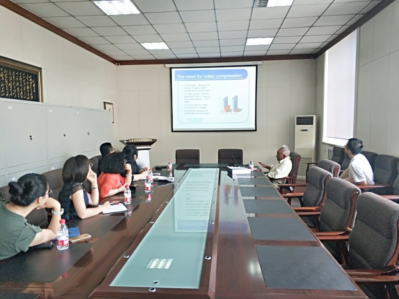 2018年6月13日下午15:00,美国德州大学阿灵顿分校教授K. R. Rao到太阳官网进行学术交流,多位老师参加会议。韩启龙副院长首先对K. R. Rao教授的到来表示欢迎,介绍了学院的基本情况,并就交流内容向与会人员进行了提醒,要求双方交流要紧密围绕学术、科研开展。K. R. Rao教授的研究领域为图像/视频压缩/编码,他对其研究方向、研究成果等向与会教师做了生动的汇报,双方就研究内容、学科方向、课程设置、人才培养等进行了热烈的交流。