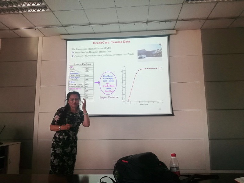 首先,科研副院长韩启龙教授向与会人员介绍Shuang Cang教授简历,并就交流内容向与会人员进行了提醒,要求双方交流要紧密围绕学术、科研开展。Shuang Cang教授以老龄化为背景,结合人工智能、数据挖掘等方面,从重要性、研究背景、研究方案等方面详细的介绍了其目前的研究内容。报告环节之后,Shuang Cang教授同与会人员开展互动交流,与会教师同学踊跃提问,Shuang Cang教授均一一耐心回答,本次学术报告使太阳官网师生及时了解到国际最新研究动态,对开展科研工作起到积极的促进作用。