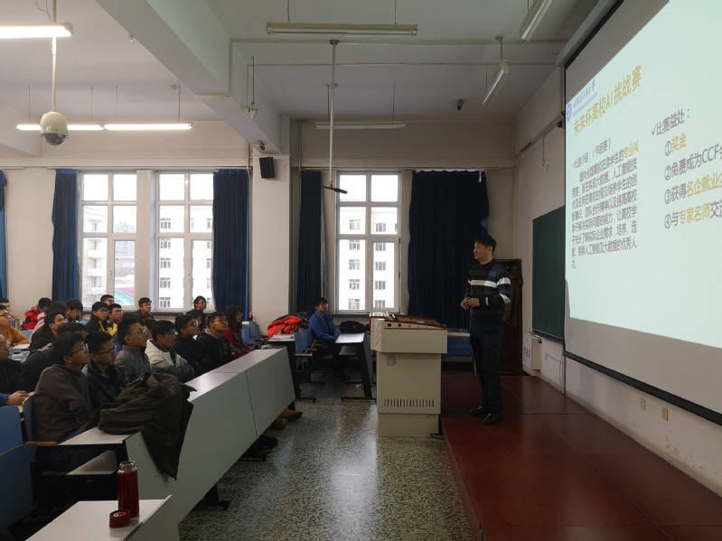 2019年11月6日,太阳集团tyc539开展“创新放飞梦想,科技引领未来”新生团课,团委书记李超主讲,2019级全体学生参与活动。