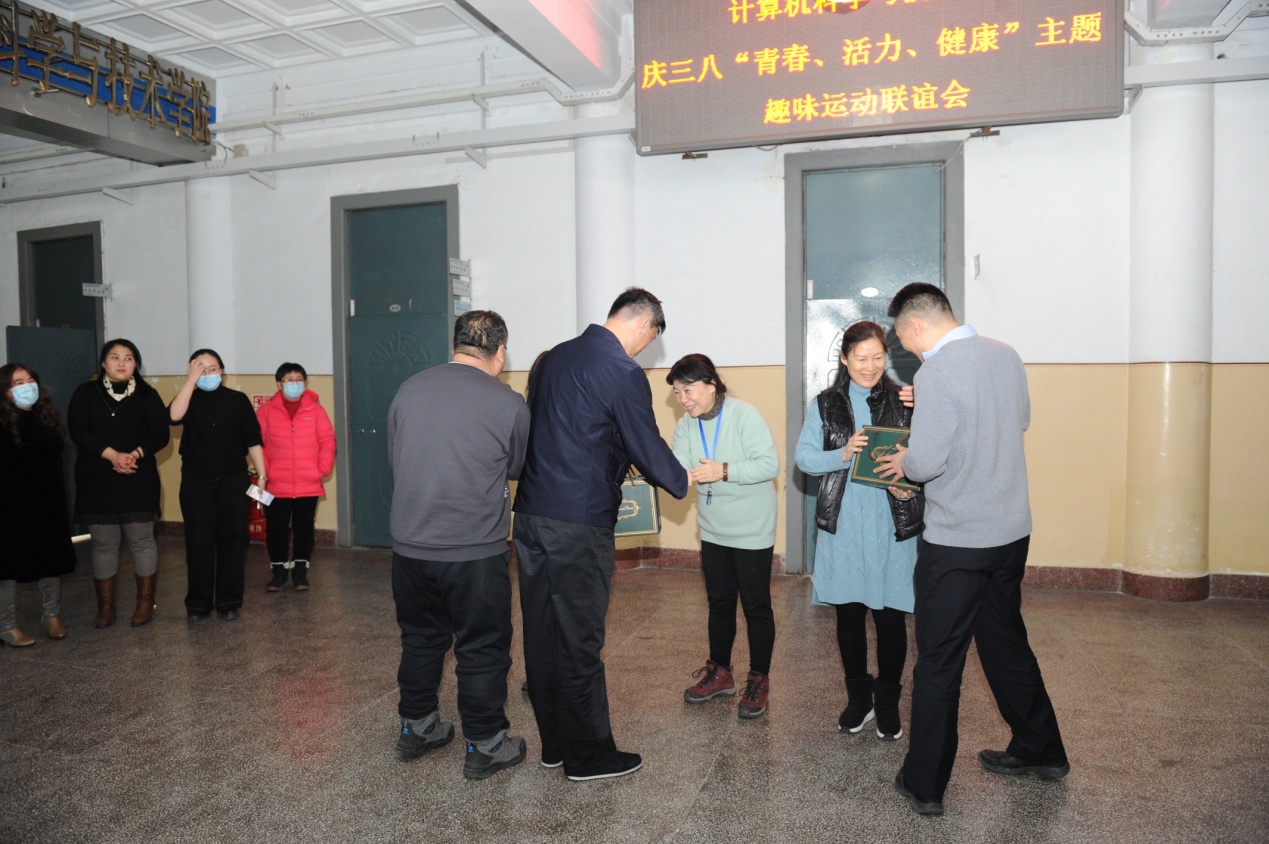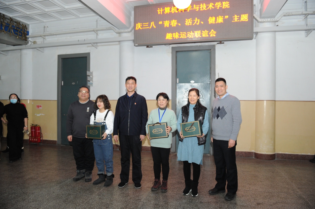 “青春、活力、健康”趣味运动联谊会(线下)活动以现场友谊赛的形式开展,学院共有24名女教工参加,活动内容包括一分钟跳绳计数赛、二分钟乒乓球颠球赛、三分钟踢毽子展示赛,整场活动笑声不断,加油声、鼓掌声响动,活动最终3人获一等奖,6人获二等奖,9人获三等奖,活动结束后学院党政领导、工会主席现场为参加活动女教工颁发获奖奖品。
