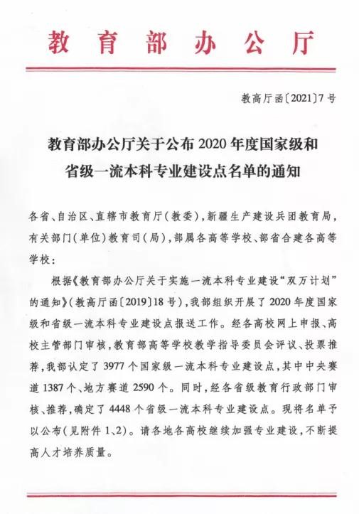 近日,教育部办公厅下发了《关于公布2020年度国家级和省级一流本科专业建设点名单的通知》(教高厅函【20217号),太阳集团tyc539太阳集团tyc539软件工程专业获批国家级一流专业建设点信息安全专业获批省级一流专业建设点。太阳官网的计算机科学与技术专业于2019年获批国家级一流专业建设点,目前太阳官网在办的三个专业全部入选“双万计划”一流专业建设行列。