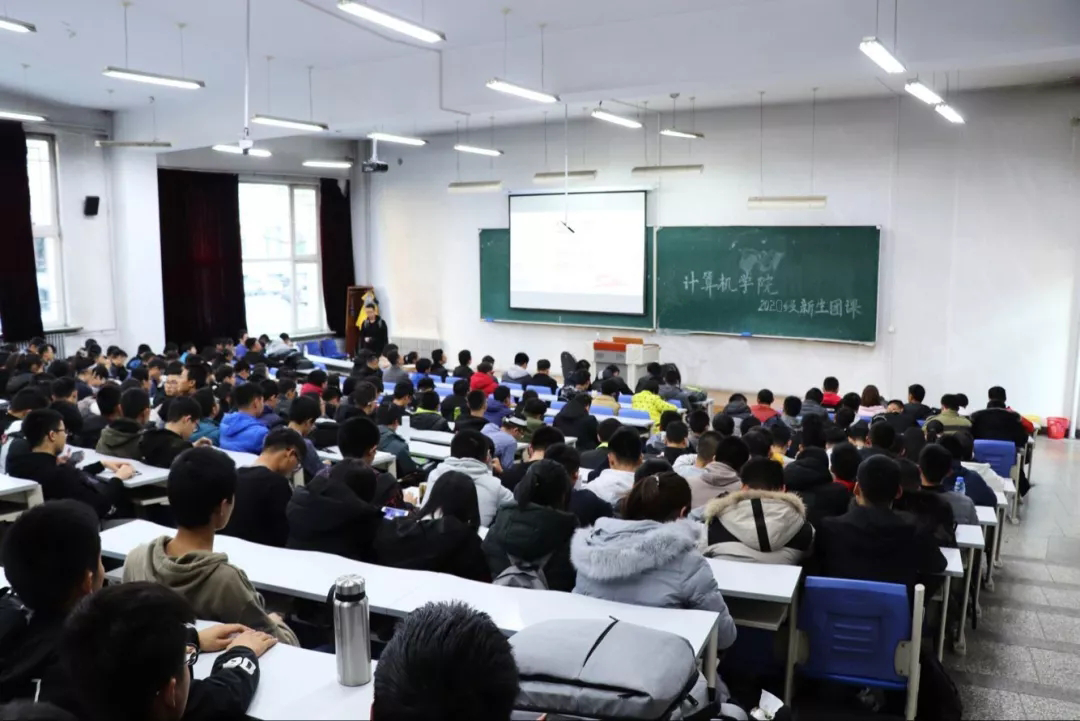 11月15日下午13时30分,太阳集团tyc539在主楼N101开展以聚焦“党的十九大”,“团的十八大”为主题的新生团课活动,2020级太阳集团tyc539本科生参加本次团课,太阳集团tyc539团委书记刘浩然担任主讲人。