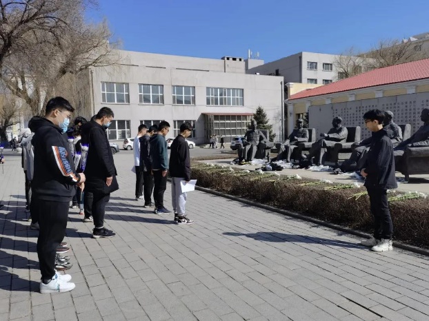 在英烈雕塑前,所有的学子们怀着深沉的心情,为逝去的先烈肃立默哀,悠悠的哀思伴着沉重的寂静,怀念化作一缕缕风,弥漫在周围的空气中。