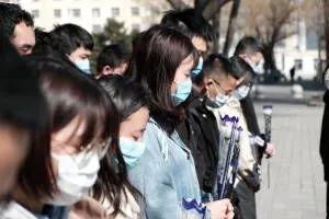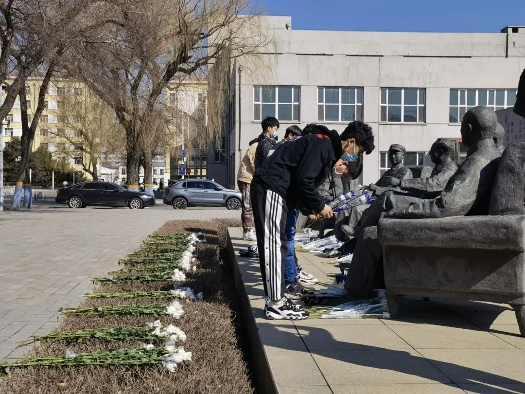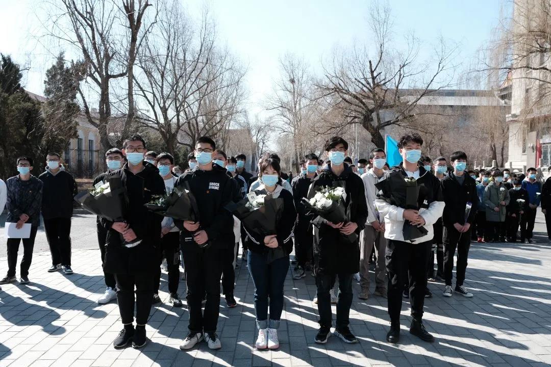 随后学子们向先烈献上那朵充斥着思念的白色花朵,神情肃穆的我们定会不负先烈们的期望,砥砺前行,为国家的建设添砖加瓦。