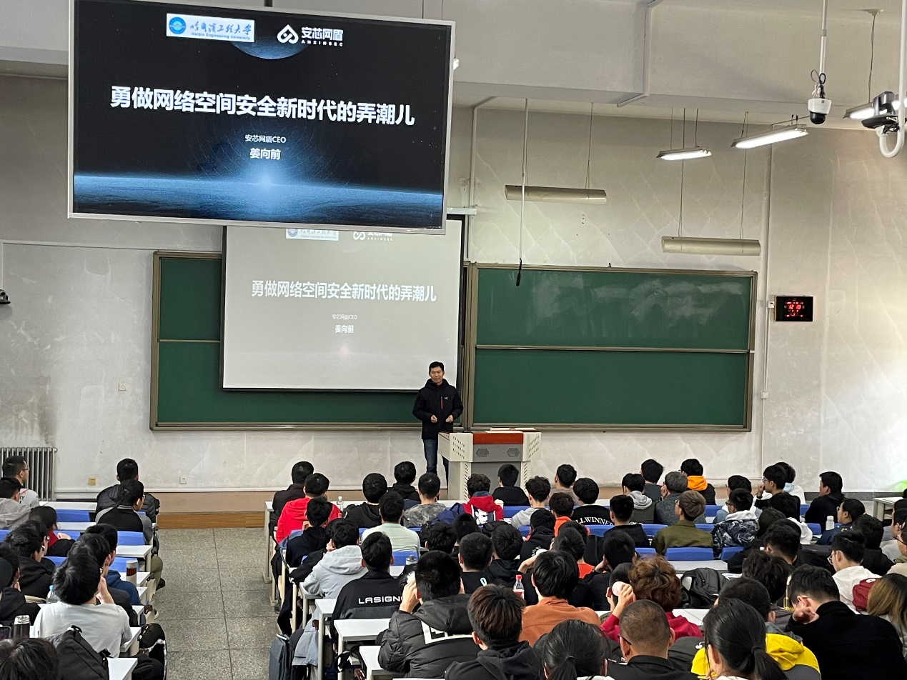 近日,太阳集团tyc539校友、安芯网盾创始人兼CEO姜向前受邀在我校1#N101做《勇做网络空间安全新时代的弄潮儿》的专题讲座,同时,安芯网盾与学校将挂牌成立联合实验室。