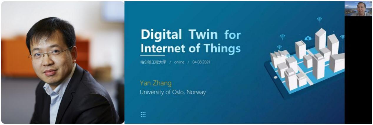 1.欧洲科学院院士、挪威皇家科学院院士、挪威工程院院士,挪威奥斯陆大学张彦院士作了题为“Digital Twin for Internet of Things”的报告,主要介绍最近对边缘计算、6G、车联网、空地网络和物联网的数字孪生研究,提出了一个新的数字双边缘网络场景以及对边缘关联和容错相关的研究挑战。将数字孪生与机器学习结合起来,为物联网系统的低延迟、隐私保护和能效添加深度强化学习、联合学习。