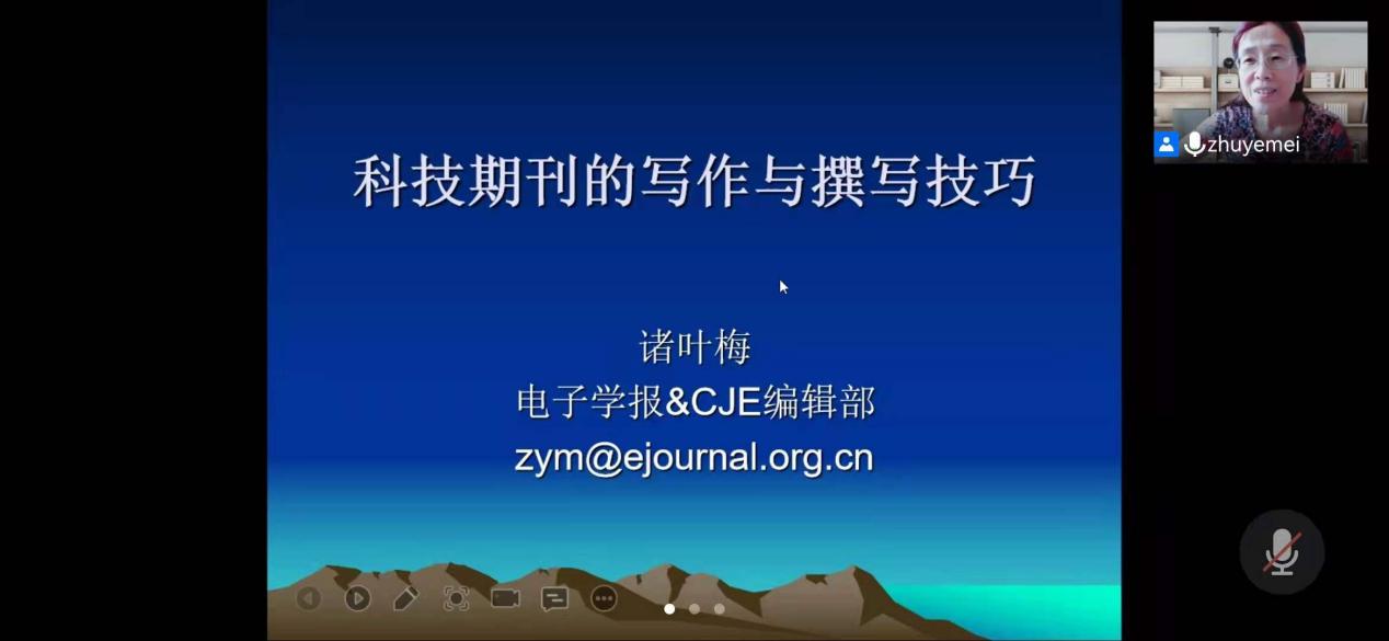 8月17日下午2:30,学院在线上组织开展题为“学术论文写作与科研素养”的卓越人才系列讲座,讲座邀请到《电子学报》&《CJE》编辑部总编,诸叶梅教授,以及西北大学博士生导师,汤战勇教授。