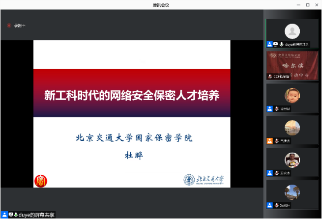 哈尔滨工业大学王宏志教授、北京交通大学杜晔教授和南开大学汪定教授三位嘉宾,分别从青年教师成长、国家人才培养和做科研的方法经验等不同角度,以计算机学科青年教师成长:我的经验和教训新工科时代的网络安全保密人才培养关于研究生科研和论文的一点浅见为题作了主题发言。