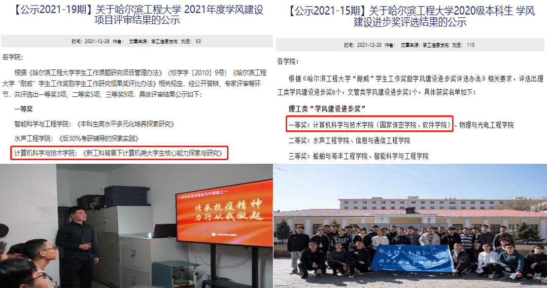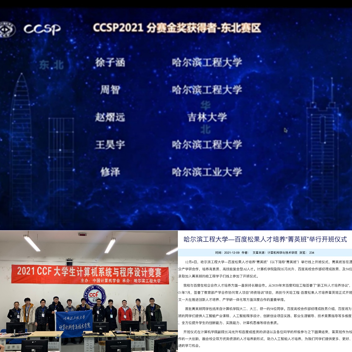 创新育人“树高峰”逐步展现,年内获超一流竞赛挑战杯“黑科技”专项赛国赛一等奖,一流竞赛大数据挑战赛、服务外包大赛实现了零的突破,连续两年有ICPC国际大学生程序竞赛金牌入账。CSP计算机能力认证成绩排名全国第七,CCF大学生计算机系统与程序设计大赛(CCSP),学院力压各985高校获得东北赛区第一名。校企合作实践创新及育人工作获得长足进步,历经一年筹备,从百度和哈工程签署“新工科人才培养协议”,到教育部产学合作协同育人项目“师资培训”项目签署,再到“哈工程-百度菁英班”正式开班,创新人才培养、产学研一体化等方面获得重要进展。