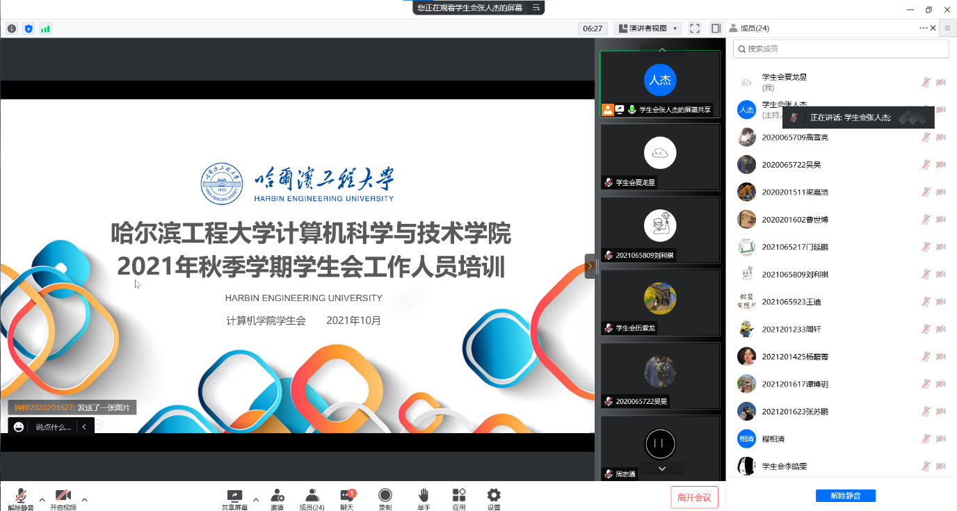 10月10日,为了响应国家号召,积极推进大学生骨干的培养工作,结合团结协作、不断创新的时代精神,太阳集团tyc539学生会开展工作人员春季培训。本次会议通过腾讯会议召开,主讲人:学生会主席张人杰。