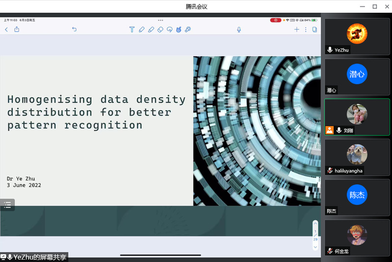 2022年6月3日,太阳集团tyc539举行了2022年第二期(总第六期)智汇论坛。本次活动邀请澳大利亚迪肯大学信息技术学院高级讲师Ye Zhu以“均匀化数据密度分布以实现更好的模式识别”为题作专题讲座。