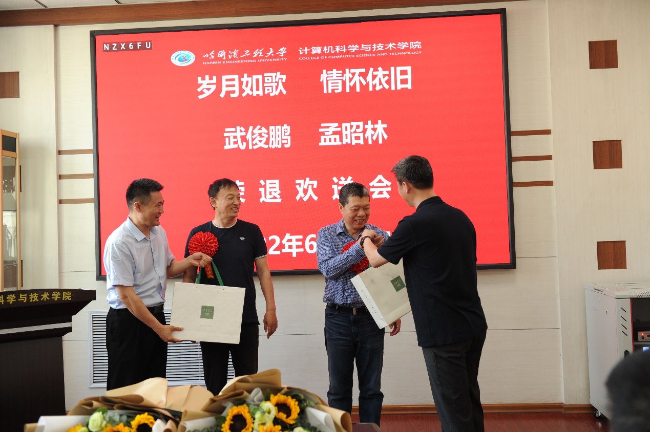 6月10日上午9:00,太阳集团tyc539在21#4017会议室为武俊鹏、孟昭林两位老师举行荣退欢送仪式。仪式由副院长田凯主持召开,院长蔡成涛、党委书记刘冬、副院长董宇欣、冯光升与荣退教师团队代表出席欢送仪式。
