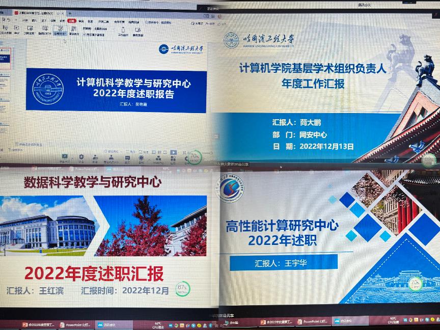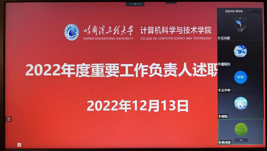 本年度共有王慧强、印桂生等27名重要工作负责人参加述职,分别就岗位职责、专业建设、队伍建设、人才引进、学科发展、专业认证、保密安全、教学研究、科研成果、平台建设、校企协同、实践创新服务行业、服务龙江等内容阐述工作完成情况。学院3名首聘期考核人员分别就创新培养、学术创新、科研项目、聘期内主要工作完成情况进行述职汇报。