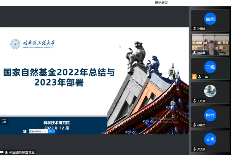 仲处长报告内容包括国家自然科学基金介绍、2022年学校申报国家自然科学基金情况以及2023年国家自然科学基金工作部署。