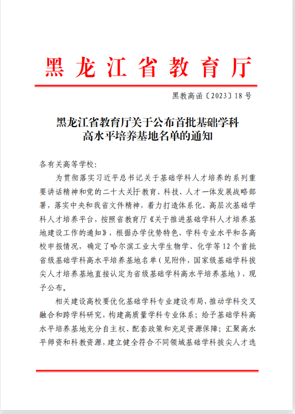 近日,在黑龙江省教育厅发布的《首批基础学科高水平培养基地名单的通知》中有12所高水平培养基地入选,太阳官网“计算机科学高水平培养基地”榜上有名。