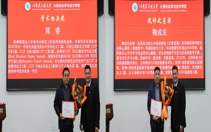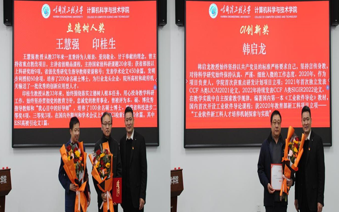 随后,对先进个人进行颁奖,获奖个人分别上台领奖,院长蔡成涛为获奖个人颁发了获奖证书,并进行合影留念。