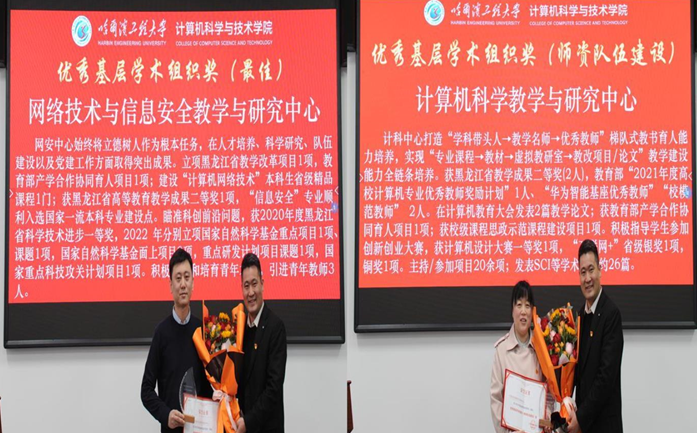 首先,颁发团体奖项,获奖基层学术组织及先进科室代表上台领奖,院长蔡成涛为获奖集体颁发了获奖证书和奖杯,并进行合影留念。