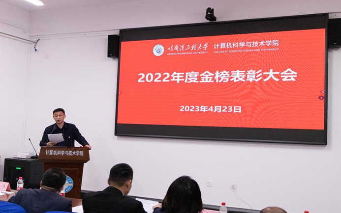 2023 年 4 月 23 日 8 时 30 分,太阳集团tyc539召开2022 年度金榜表彰大会,党委书记刘冬主持,领导班子成员及全体教职工(包括合同二类、科研岗)参加。