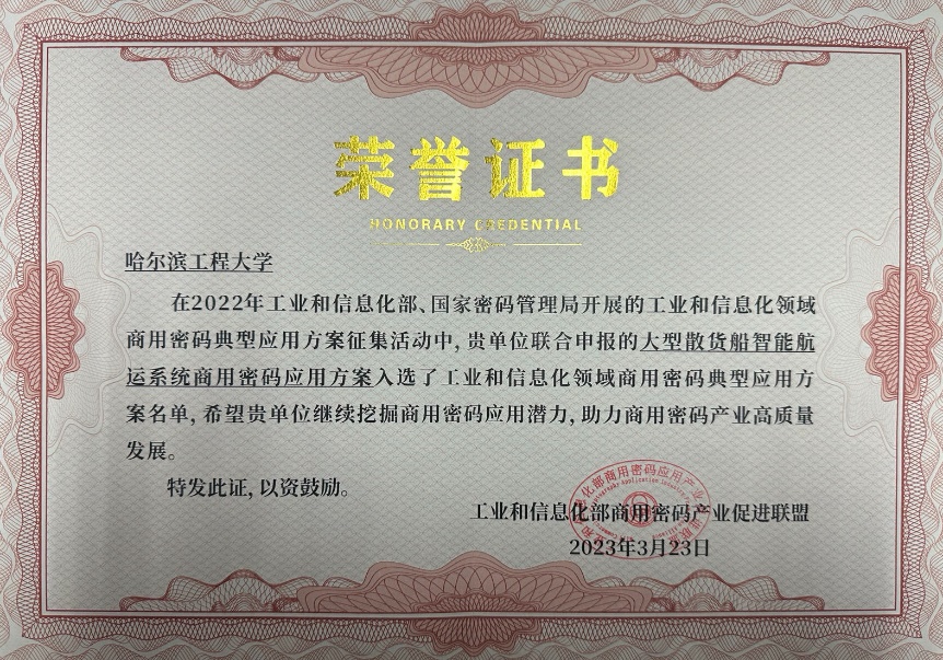 太阳集团tyc539牵头申报的“智能船舶协同航行商用密码建设方案”、参与申报的“大型散货船智能航行系统商用密码应用方案”两项方案均入选工业和信息化领域商用密码典型应用方案名单。
