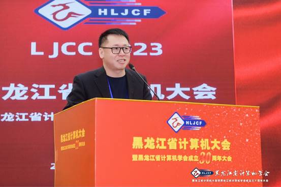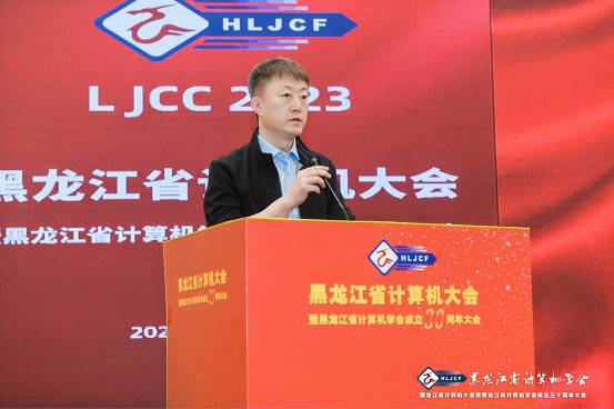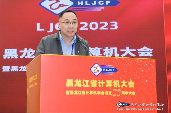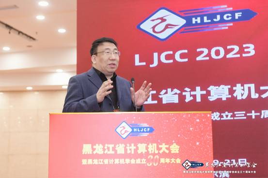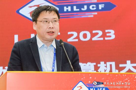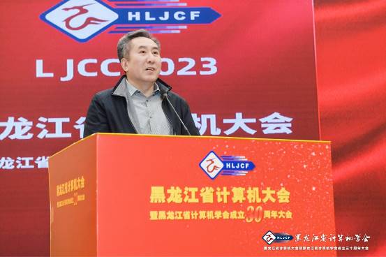 黑龙江省计算机学会理事长,哈尔滨工业大学副校长 刘挺 教授致辞。刘挺理事长主要介绍了学会的历史和第七届理事会成立以来学会的发展情况,对学会理事单位、团体会员单位和注册会员在我省的覆盖情况做了深入分析,对学会下设的各个专业委员会、工作委员会进行了详细的介绍,并对自2022年7月至今学会举办的各类活动进行总结汇报,明确学会的主要工作方向和重点工作内容。