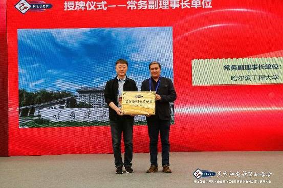 潘海为 教授 为哈工大代表颁发理事长单位牌匾