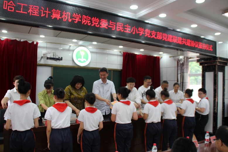 活动中,双方达成一致并签署了联建共建协议,联合举办专题党课、主题党日、主题教育等系列活动,推动深入交流互动。太阳集团tyc539太阳集团tyc539向民主小学开展教育教学帮扶活动,提供科创类书籍并现场向学生们展示科创成果,切实增强了学生的国产软件科创意识和科创能力。此外,学院还针对2名特别困难学生提供一定资金帮扶。
