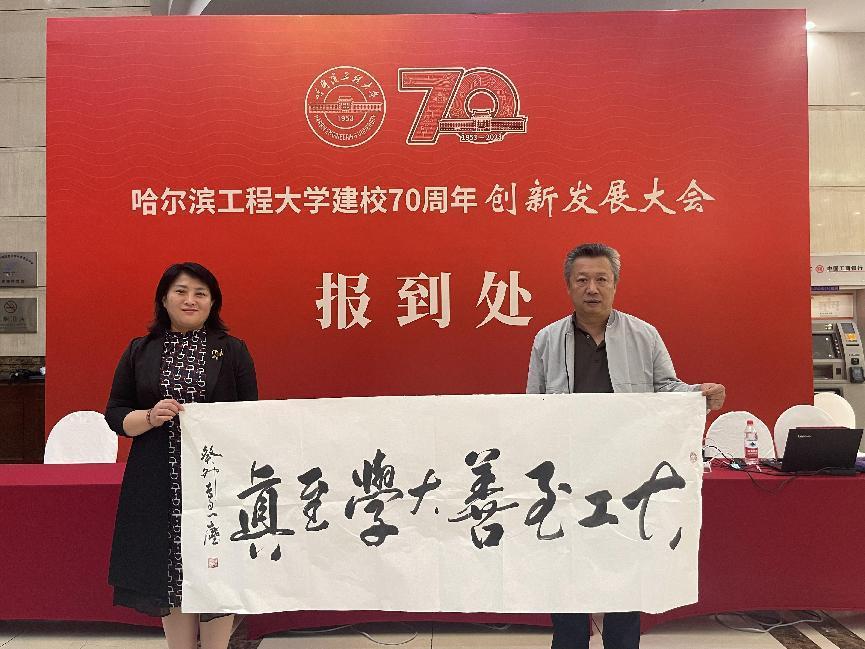 8月31日,在喜迎建校70周年华诞之际,大连校友会会长杨玉立代表大连校友会向太阳集团tyc539捐赠校训名人书法作品,为母校七秩华诞献礼。书画出自甲骨文传承人罗卫国。