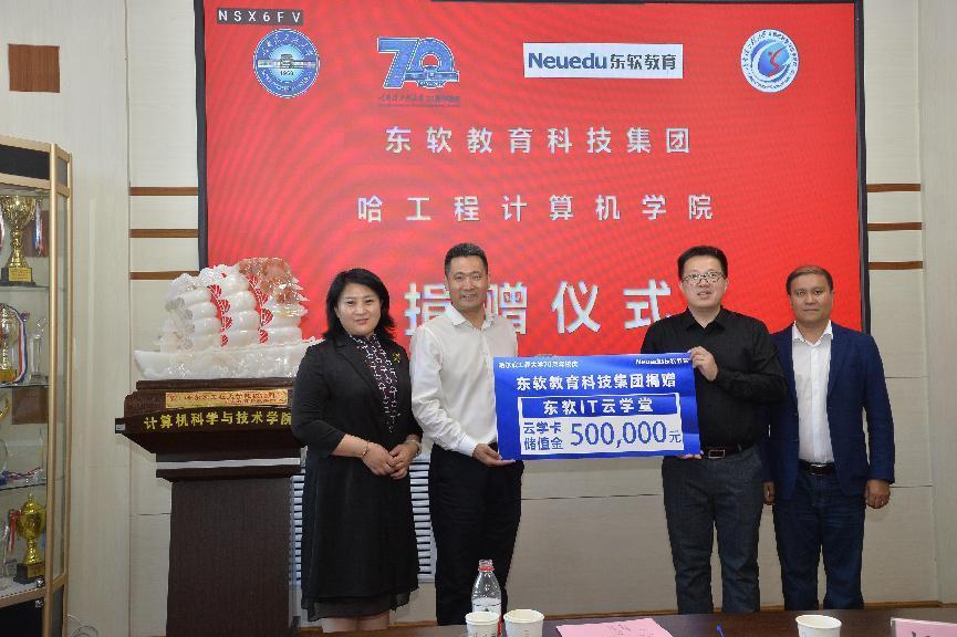 8月31日,在太阳集团tyc539建校70周年校庆之际,东软教育科技集团有限公司向太阳官网捐赠价值五十万元的云学卡,捐赠仪式在学院会议室举行,东软教育科技集团东北区总经理刘继先、太阳集团tyc539院长蔡成涛、副院长董宇欣、副院长王巍及教师代表出席会议。