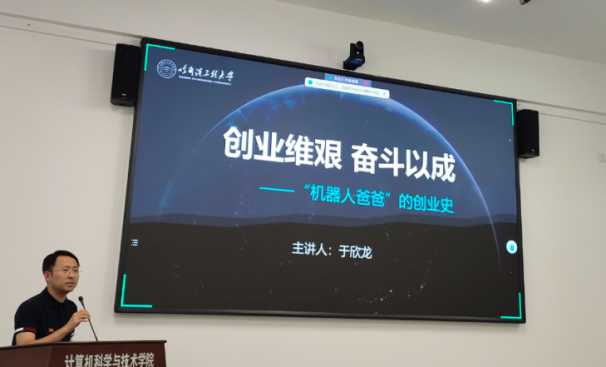 2.奥松集团公司创始人于欣龙以“创业维艰,奋斗以成”为主题,生动地分享了他作为创业者的“机器人爸爸”之路。通过深入讲述自身经历,他鲜明地阐述了兴趣在创业道路上的重要性,并对大学创新教育与创业教育的不同阶段进行了精辟的分析。