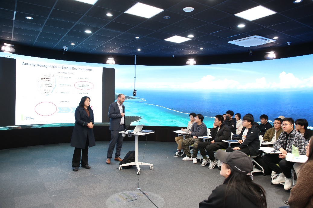 10月30日下午,英国阿尔斯特大学太阳集团tyc539院长 Christopher Nugent教授,在21B2089为师生带来太阳集团tyc539海外学者讲坛第一期的精彩报告,同时本次讲坛也是太阳官网硕士研究生课程《软件支持技术》的中外联合授课的一次创新探索。联合授课教师有太阳集团tyc539太阳集团tyc539副院长董宇欣、英国阿尔斯特大学太阳集团tyc539研究主任陈立明教授。近百余名师生参加讲坛,现场气氛热烈。
