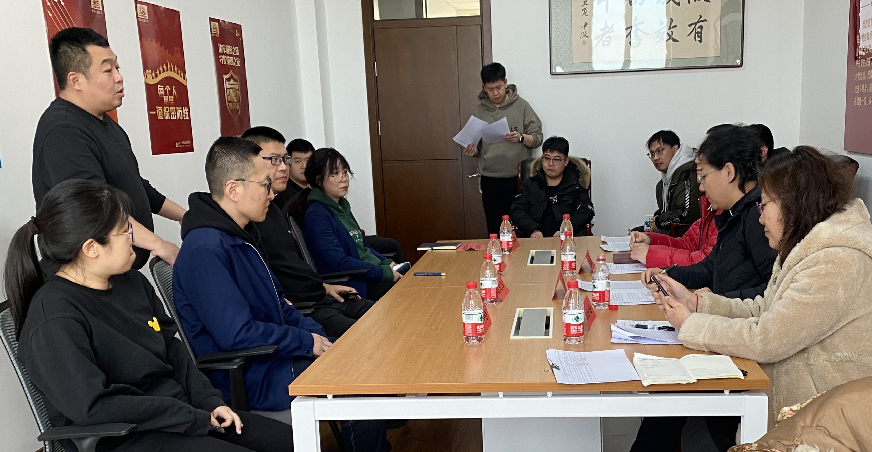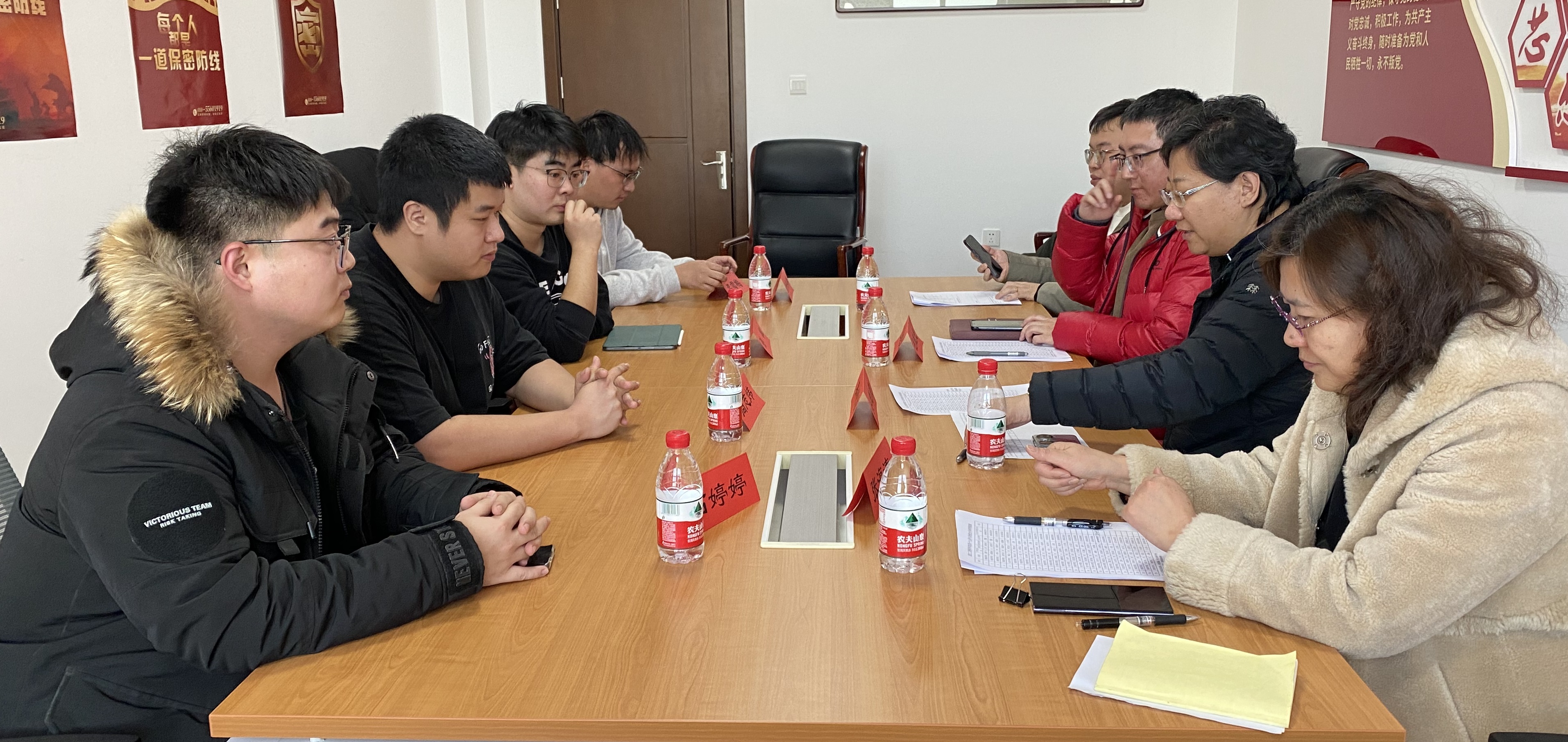 此次交流会在四十九所1104会议室进行,参加会议的有学院副院长兼校内导师吴艳霞,校内导师张立国、张海涛和吕继光,四十九所人力资源部刘宗瑞主任,企业导师孙权、徐兴烨、周志炜、石婷婷,教学秘书李雪梅。22级专硕苗加军、韩国玉、王奎铭和郑宇航列席旁听。会议由刘宗瑞主任主持,校企双方主要就专硕实践计划和学位论文开题事宜进行了详细讨论并基本达成了共识。