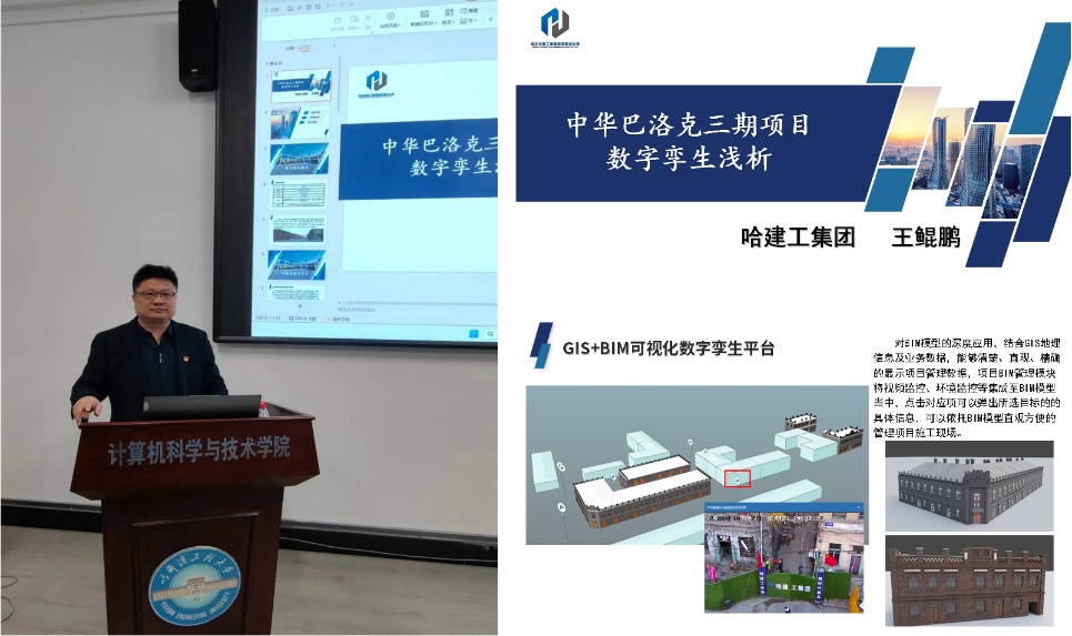 哈尔滨建工集团副总经理王坤鹏以“中华巴洛克三期项目——数字孪生浅析”为主题对可视化GIS+BIM可视化数字孪生平台以及智慧工地管理平台进行了介绍,最后结合实际案例对当前数字孪生技术面临的问题以及对应的解决方案进行了分析与展望。