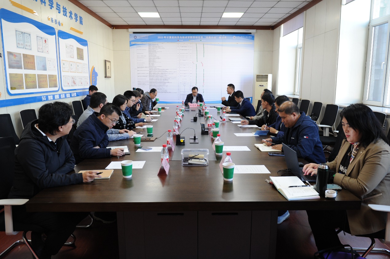 10月11日下午,校党委常委、副校长於志文来学院听取工作汇报。院长蔡成涛、各团队负责人及领导班子成员参加工作会。