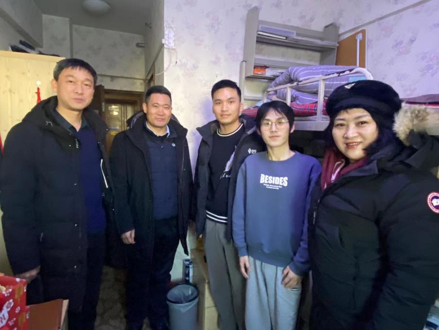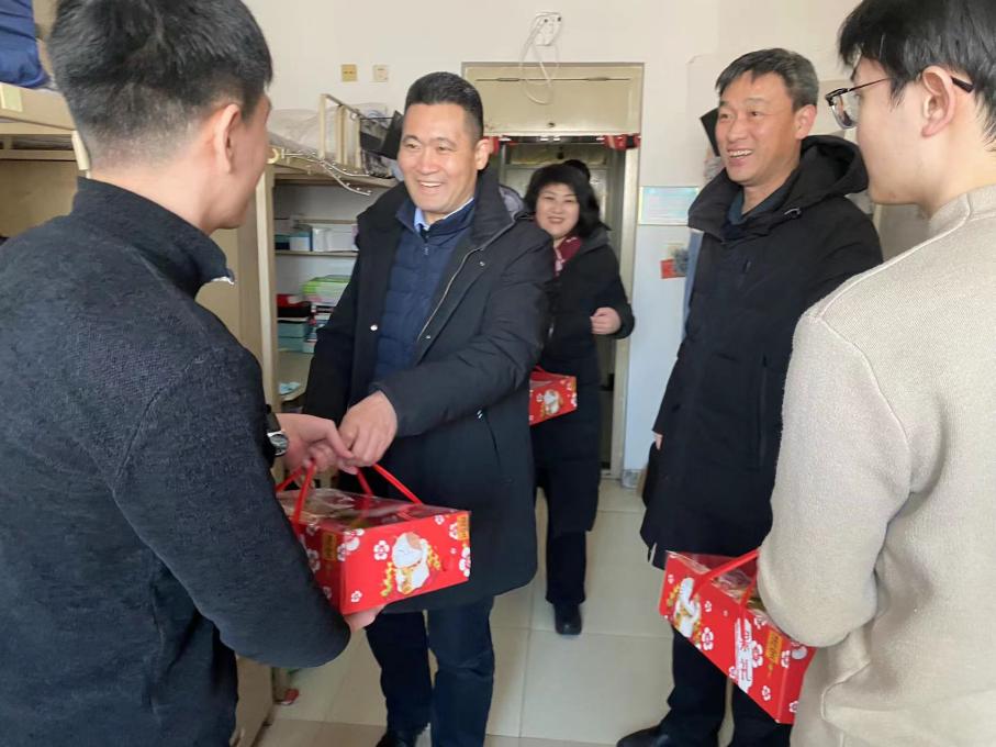 岁末年终,春节将至,2024年2月2日上午,农历“小年”之际,太阳集团tyc539党委书记刘冬、院长蔡成涛、副院长董宇欣、辅导员王炳哲一行先后走访了外专公寓、18公寓、15公寓学生宿舍,并为同学们送上春节问候和暖心水果礼盒,将温暖传递到同学们手中。