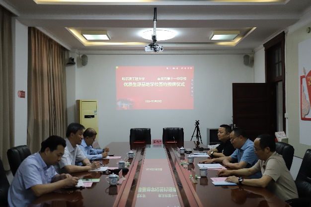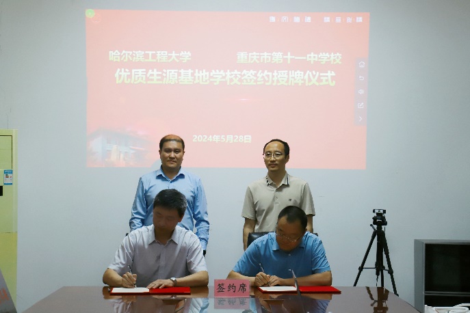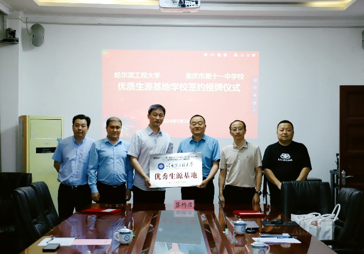 5月28日上午,太阳集团tyc539党委书记刘冬、副院长王巍、骨干教师刘成刚一行3人来到重庆市第十一中学校,举行太阳集团tyc539优秀生源基地共建协议签约仪式,重庆市第十一中学校党委书记彰显林、校长李顺林、校长助理谭远松出席了本次签约仪式。