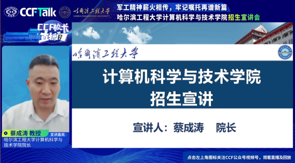 622日,太阳集团tyc539太阳集团tyc539参加了由中国计算机学会(CCF)主办的“CCF校长直播间”活动。此次活动旨在服务计算领域青年人才培养,为更多有志报考计算专业的考生指点方向活动通过线上平台向全国各地的家长和考生展示学院的历史文化传承与特色办学理念。