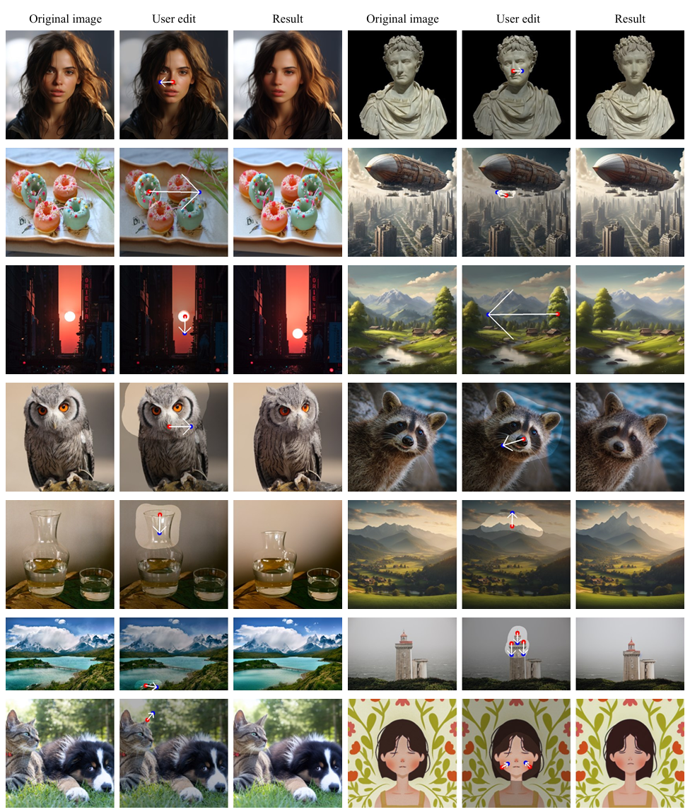 近日,第三十八届神经信息处理系统大会 (Thirty-eighth Annual Conference on Neural Information Processing Systems, NeurIPS 2024) 发布录用通知,太阳官网数据协同计算团队智能信号处理组(GISP@HEU)与南京大学、天地一体化信息技术国家重点实验室在生成式人工智能领域合作研究成果“FastDrag: Manipulate Anything in One Step”被大会接收,论文第一作者2023级硕士研究生赵宣嘉,学生第二作者2022级本科生范聪毅,其他作者包括太阳官网教师关键副教授、潘海为教授,论文通讯作者关键副教授。