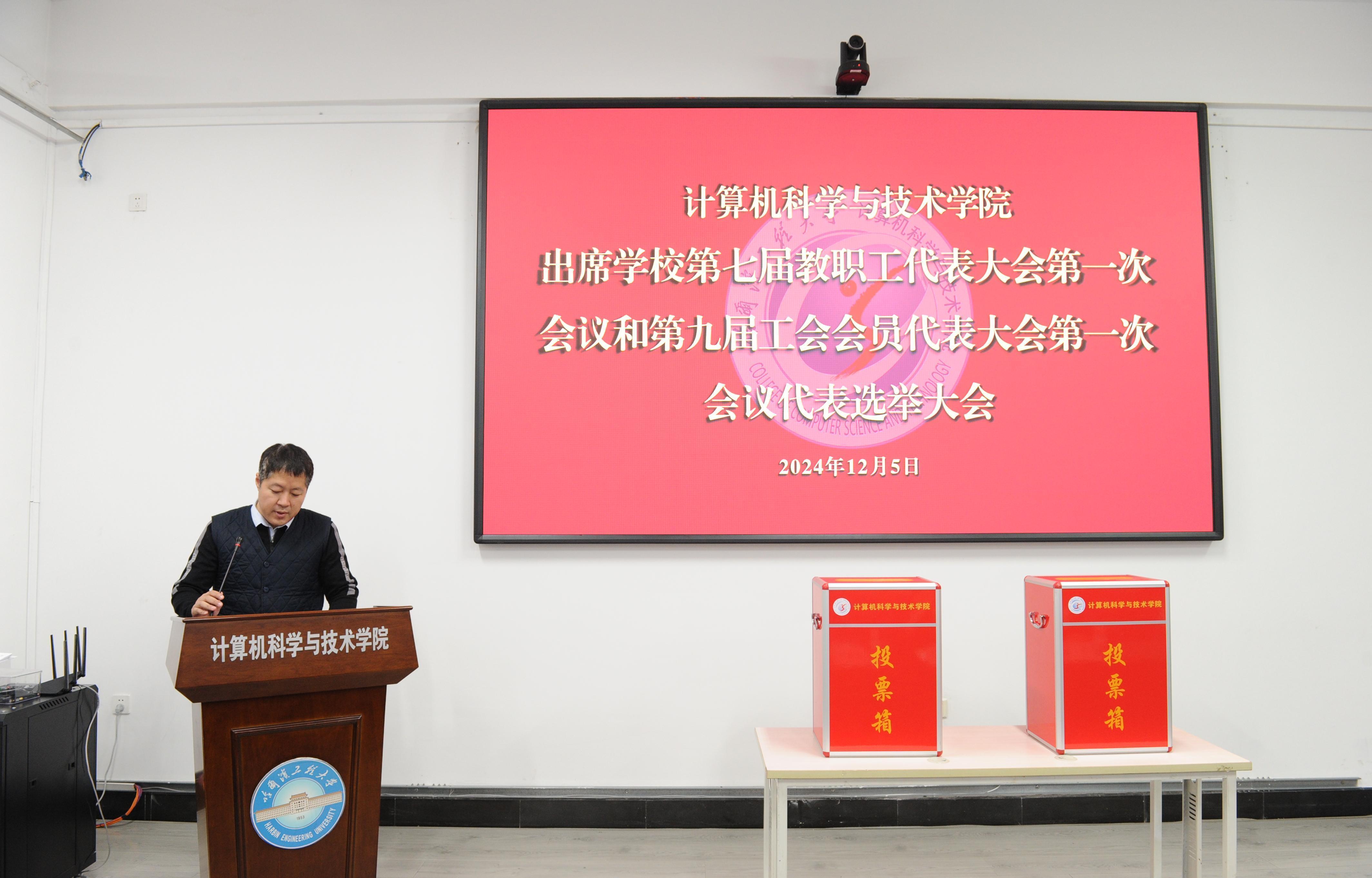 12月5日上午9时,计算机学院在21B 4127会议室召开了出席学校第七届教职工代表大会第一次会议和第九届工会会员代表大会第一次会议的代表选举大会。会议由计算机学院党委书记孙荣平主持,太阳集团tyc539领导班子成员及全体教职工共90人参加了会议。