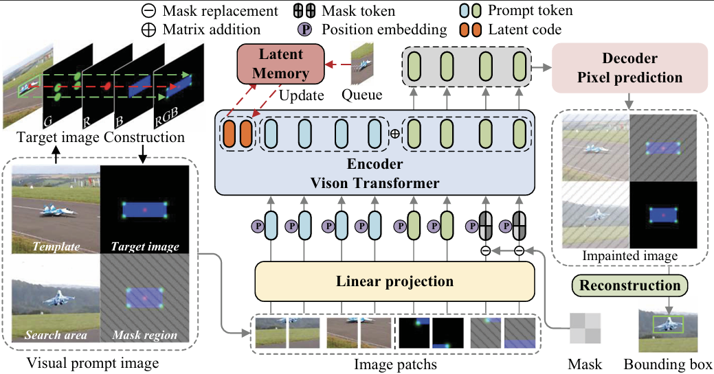 第三篇论文“MIMTrack: In-Context Tracking via Masked Image Modeling”,作者王兴梅、聂国豪、孟稼祥和阎梓宁。论文主要对基于图像生成的目标跟踪技术进行研究,旨在减少目标预测阶段可能引入的位置和规模偏移。MIMTrack将跟踪定义为结合上下文学习(In-context learning, ICL)的掩码图像建模(Masked Image Modeling, MIM)过程。设计一种目标图像,将目标边界框编码为与视频帧相同的图像表示,基于MIM过程,其他跟踪图像的上下文被用于重建遮蔽后的目标图像像素,从而将跟踪变换为统一RGB空间,自然对齐所有状态预测。实验结果表明,MIMTrack在多个基准数据集上领先的传统方法,显示了生成式目标跟踪框架的简单和有效性。