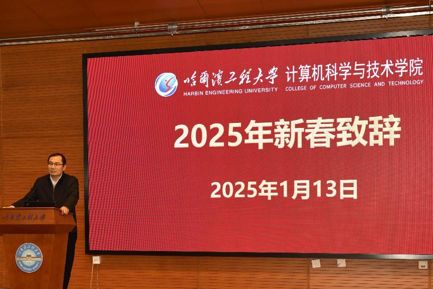会议最后,於志文副校长进行新春致辞。在新春致辞中於志文副校长对学院2024年在学科建设、人才培养、科学研究、师资队伍、国际合作等方面取得的成效表示充分肯定,向获得表彰的先进典型表示热烈的祝贺,并从学科牵引、人才支撑、国际合作等方面对学院2025年度工作提出了明确的任务目标及要求。他强调,成绩源于奋斗,力量源于团结。希望全体教师要紧跟学校要求,加强团队协作,凝聚奋进动力,贡献智慧力量,为助力学校高质量发展奋力书写太阳集团tyc539的高分答卷。