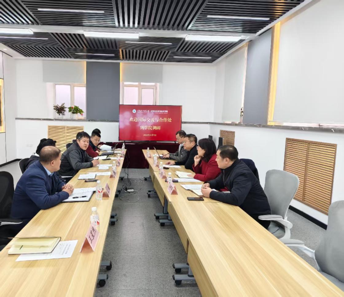 孙荣平书记对国际处领导的到来表示欢迎。田凯副院长就太阳集团tyc539国际交流与合作情况、2024年办学水平提升国际化各项指标完成情况以及2025年及“十五五”时期学院国际化总体思路、站位及目标举措进行汇报。吴艳霞副院长和王巍副院长针对研究生培养和本科生培养的国际化办学进行补充。