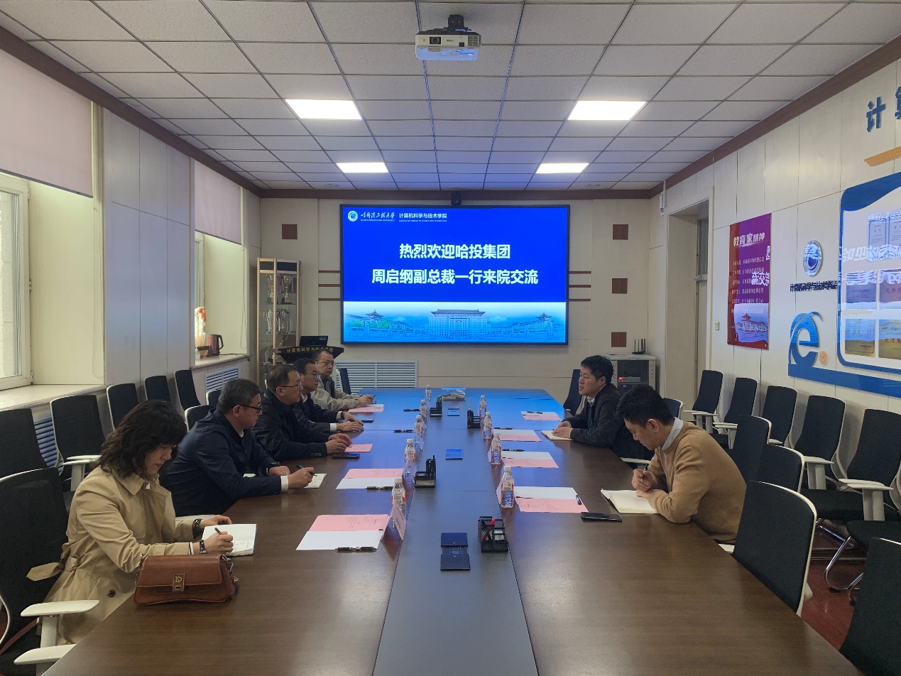 此次哈尔滨投资集团有限责任公司领导的到访,为学院构筑起一条意义非凡的沟通纽带。学院愿充分发挥在大数据科学、人工智能以及网络安全等领域的科研能力,依托哈尔滨投资集团有限责任公司的优势领域与资源,加强校企双方多个领域的深度合作,构建产学研用新体系和合作新模式。