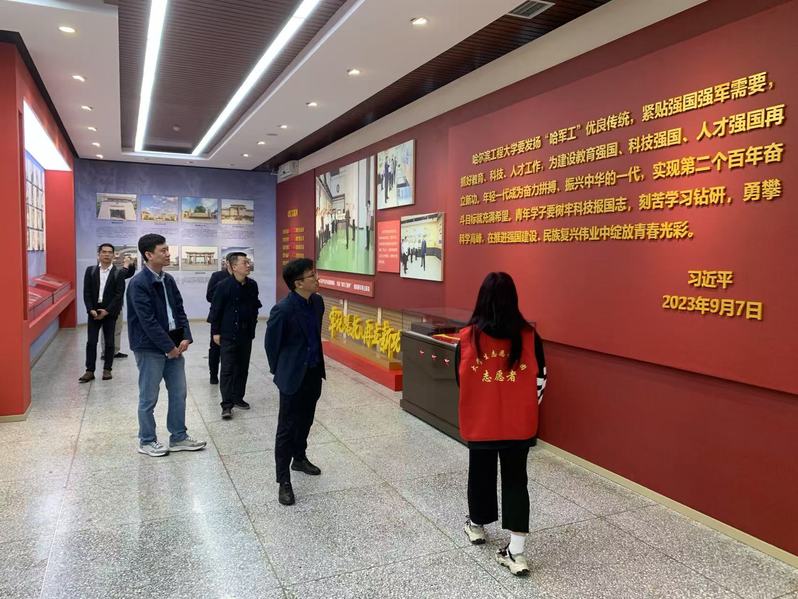 易行健一行参观了哈军工纪念馆,深入了解了学校的发展历程、办学特色、辉煌成就,认真聆听了哈军工为新中国国防科技事业作出的突出贡献,对学校始终坚持为党育人、为国育才,为强国建设勇担使命表示钦佩。
