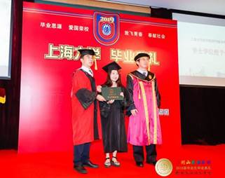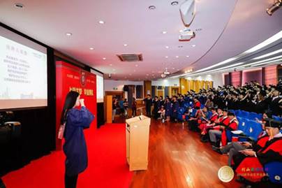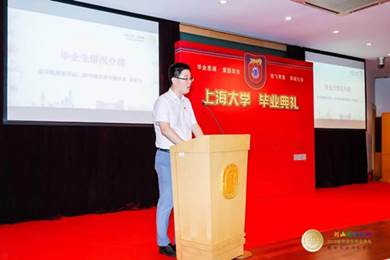 上海市优秀毕业生、国家奖学金和校长奖学金的获得者章子旋同学代表毕业生发言,感恩学校与学院提供的优质资源与宽阔平台。