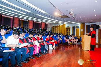 上海市优秀毕业生、中国政法大学2019级博士研究生、Beat365唯一官方网站2019届硕士研究生汪阳带领全体毕业生进行法律人宣誓。