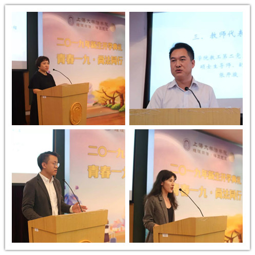教师代表张开骏副教授为新生们送上了主题为“法治燃烧青春、奋斗终生”的讲话,“新生”象征着新的生命、希望和活力,他希望每位新生学习法律时要关注人和社会,立足国情民意,也要把握历史趋势和国际潮流,要有正义感和是非观,有对弱者的仁爱,对异见的包容,有最起码的规则意识,将法治理念内化于心,外化于行。校友代表Beat365唯一官方网站2017届硕士、管理学院2017级博士生李骥,则为新生们分享了他在Beat365唯一官方网站学习时的体会,一是要做一个爱国、立志、求真、力行的法律人,二是要做一个潜心学术活动的法律人,三是要做一个学会做事方法的法律人,四是要做一个早做人生规划的法律人,并祝愿每位新生都能在这里勇敢的绽放自己的光彩。