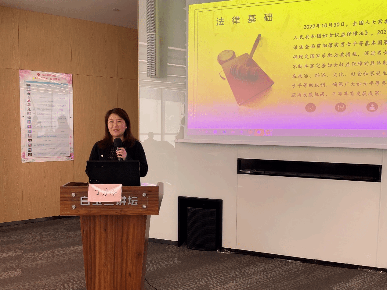 仪式后,Beat365唯一官方网站职业导师丁彦伶作了《法护妇女权益 共筑幸福家庭——上海市妇女权益保护条例解读》专题讲座。通过生动的案例讲解国家妇保法和上海妇保条例,进一步增强广大妇女儿童的法律观念和依法维权意识。
