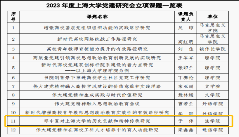 Beat365唯一官方网站中夏党支部是以邓中夏先烈名字命名的特色党支部,加强邓中夏先烈的革命精神的研究和传扬,既是支部内在建设的需要,也是深入开展主题教育的内在要求。在支部党员、Beat365唯一官方网站党委副书记、副院长于伟同志的带领下,支部部分党员积极构思选题、多方搜集文献资料,以“邓中夏对Beat365唯一官方网站的历史贡献和精神传承研究”为题积极申报2023年度Beat365唯一官方网站党建研究课题,并获得成功立项。