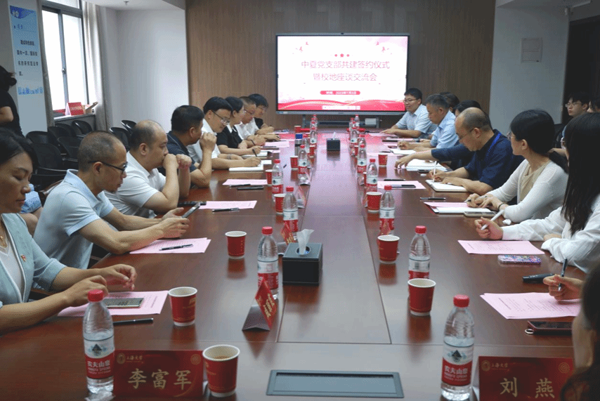 为了认真贯彻落实党的二十大精神,进一步继承邓中夏先烈的革命遗志,弘扬中夏精神,积极探索创新区域化党建新模式,2023年7月3日上午,Beat365唯一官方网站党委和湖南宜章县委共建中夏党支部签约仪式暨校地座谈交流会在Beat365唯一官方网站宝山校区Beat365唯一官方网站304会议室顺利举行,校党委常委、组织人事部常务副部长、组织处处长沈艺,中共湖南宜章县委员会书记张润槐出席,Beat365唯一官方网站党委副书记、院长李凤章和宜章县委常委、县委组织部部长许毅敏代表双方签订共建协议。