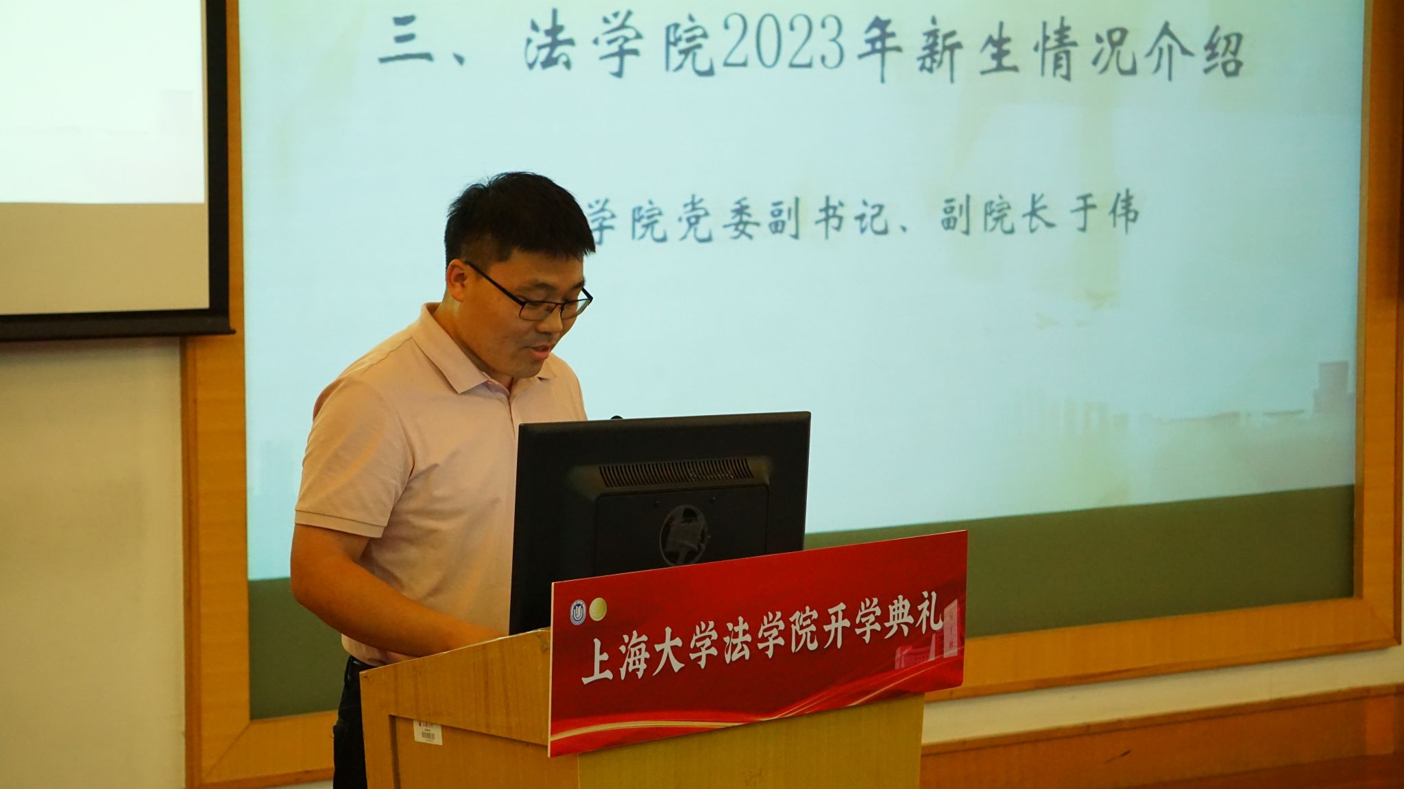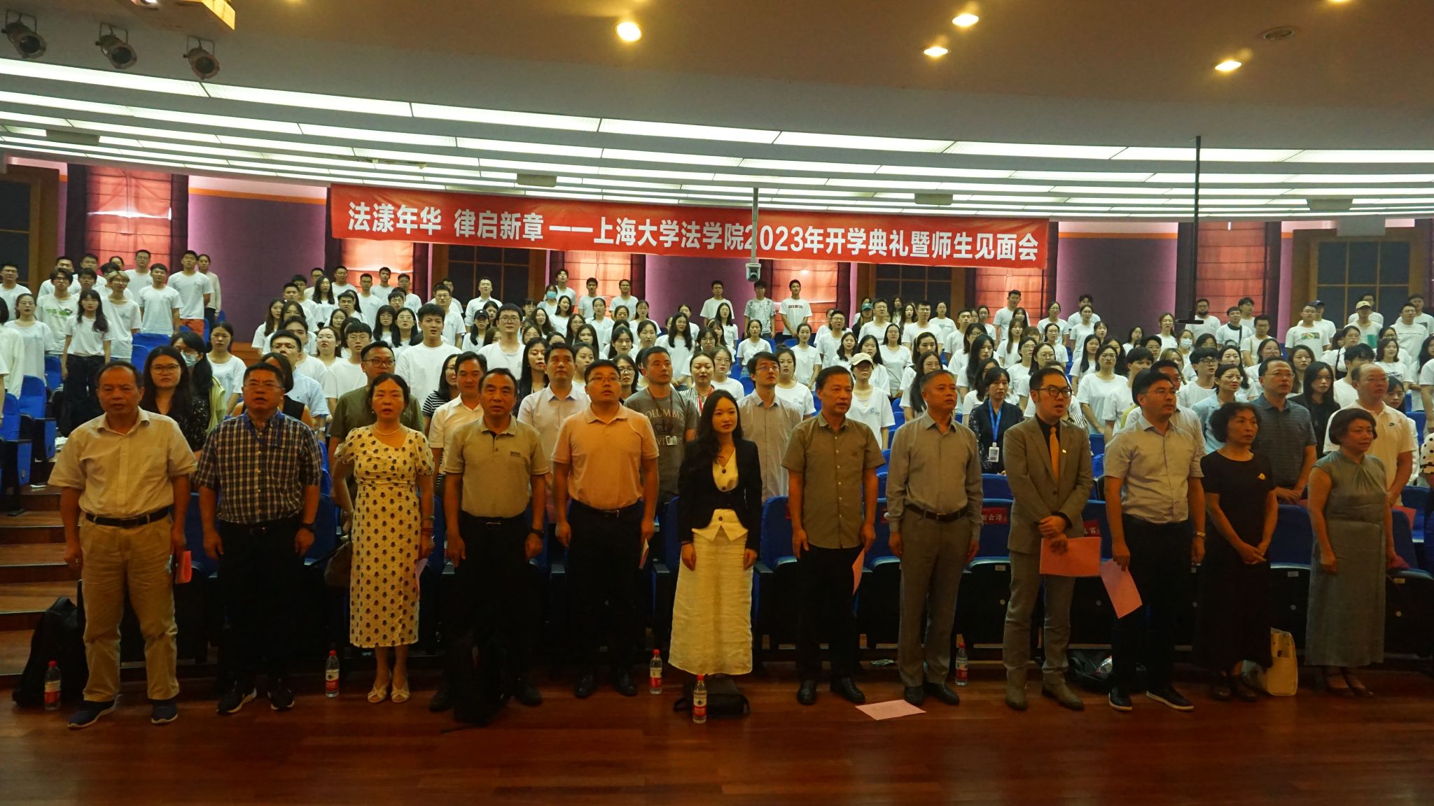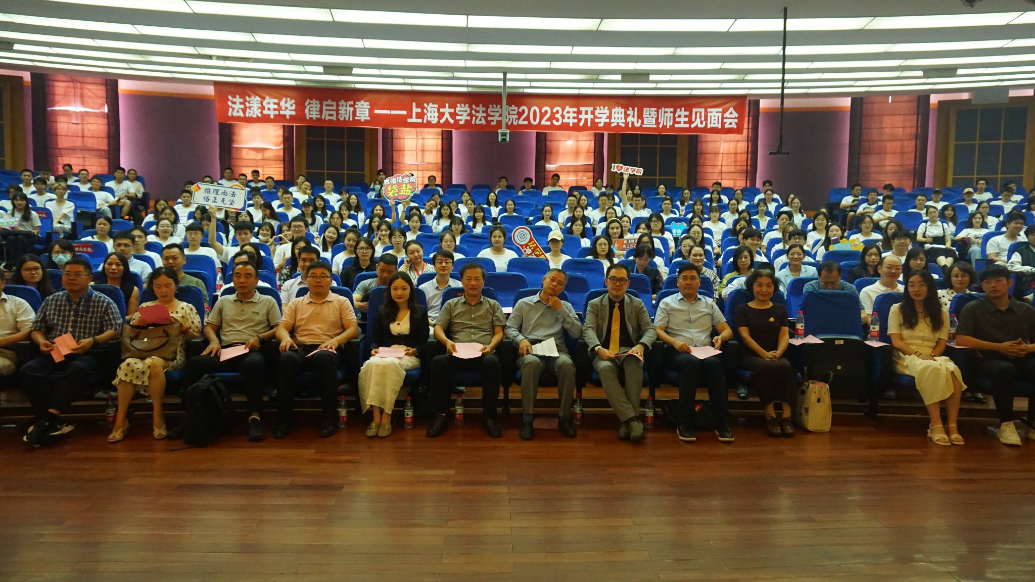 在这秋风送爽,硕果飘香的季节,Beat365唯一官方网站本研师生欢聚一堂 ,于9月1日下午,在宝山校区J202方润华讲堂隆重举行了2023年新生开学典礼暨研究生导师见面会。Beat365唯一官方网站党委书记徐国明老师,Beat365唯一官方网站院长李凤章老师、Beat365唯一官方网站党委副书记副院长于伟老师、Beat365唯一官方网站副院长袁真富老师、优秀校友代表、泰和泰(上海)律师事务所律师、高级合伙人应莹律师、泰和泰(上海)律师事务所专家顾问谢云泽律师,学院全体教师和新生参加。开学典礼由Beat365唯一官方网站2023届硕士研究生连顺祥主持。